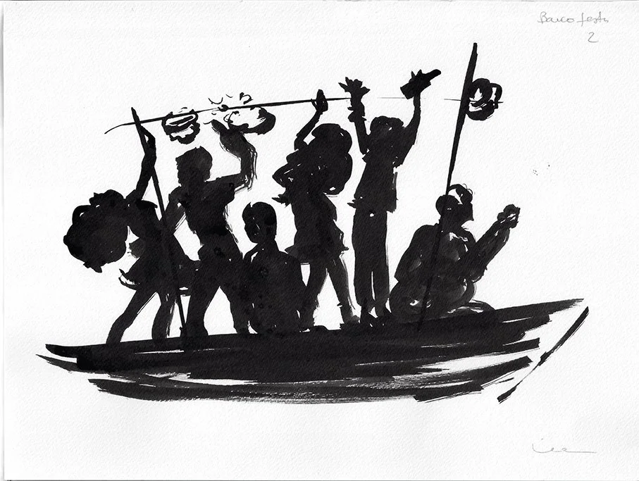 “Barco Festa 1”, Indian ink on watercolour paper, 32x24 cm.